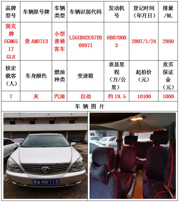本次拍賣會拍賣的車輛共計10輛車,分別為帕薩特牌SVWZ183LJI小型轎車一輛、匯眾牌SH6530中型普通客車一輛、別克牌SGM6517小型普通客車一輛、別克牌SGM7161LE小型轎車一輛、寶來牌BORA1.6小型轎車一輛、捷達牌FV7160GiFE3小型轎車五輛(詳情見下文),為打包整體拍賣,不作拆分,整體起拍價:33900元,且只對標的現狀進行拍賣,不作任何質量擔保。