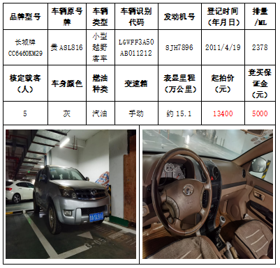拍品編號4:長城牌CC6460KM29小型越野客車一輛