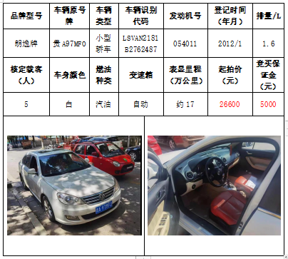 拍品編號6:朗逸牌小型轎車一輛