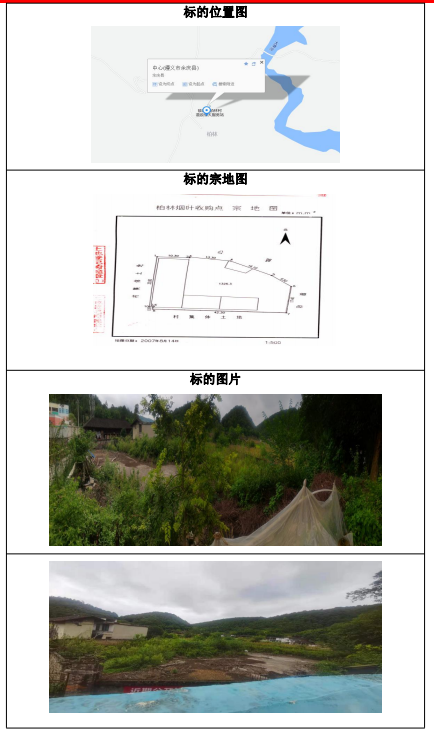 該標(biāo)的位于余慶縣敖溪鎮(zhèn)柏林村村委會旁,標(biāo)的上無建筑,該標(biāo)的以圍墻為界,標(biāo)的位置在村寨邊緣,證載土地面積:約1326.3㎡,土地使用權(quán)性質(zhì):劃拔,土地證載用途:煙葉收購,土地證號:余國用(2007)第897號。