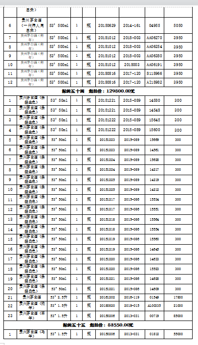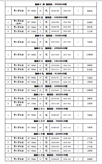 注:本場拍賣標的經(jīng)過貴州茅臺酒股份有限公司鑒定為其公司生產(chǎn)。所有標的按現(xiàn)狀進行拍賣,競買人自行判斷。報名后持報名成功短信進入展示現(xiàn)場看樣,看樣時需提前預(yù)約,配合工作人員安排。競價成功的買受人需公示期過后付款提貨。競買人需到現(xiàn)場查驗,如未到現(xiàn)場實地看樣的競買人,視為對本標的實物現(xiàn)狀的確認,責(zé)任自負。成交后買受人需向拍賣人另行支付成交價2%的傭金。競買人應(yīng)于2022年1月13日下午13:20時前入場,遲到視為放棄此次競拍。