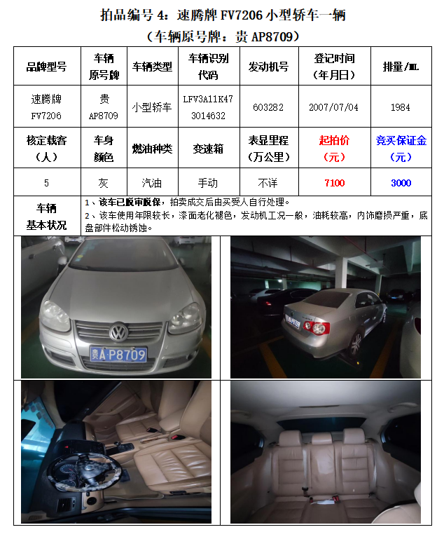七、報名需交納競買保證金(車輛3000元、房產20萬元)資料服務費300元/套(資料服務費不退)。意向競買人應在規定報名時間內交納競買保證金、資料服務費到我公司指定銀行賬戶,取得意向競買資格。