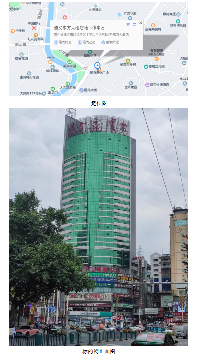(1)該標的位于遵義市丁字口遵義大飯店主塔樓7層,地處遵義市繁華地段,周邊商業氛圍濃重,交通便利,水、電、電梯、通訊、消防等設施齊全,無物業費。